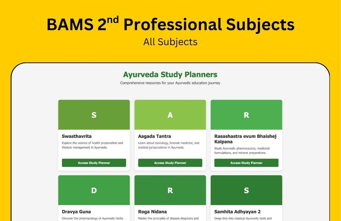 Digital Mobiles Web App based Study Planner specially designed for BAMS Second Professional students. It includes subject-wise planning tools for all key subjects, created according to the latest NCISM syllabus.